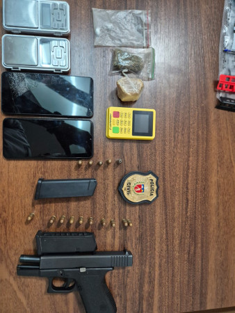 A Polícia Civil do Paraná (PCPR) prendeu um homem, de 35 anos, em flagrante pelos crimes de tráfico de drogas e posse ilegal de arma de fogo de uso permitido. A ação aconteceu na manhã desta terça-feira (6), em Mandaguari, no Norte do Estado.
