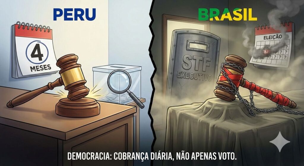 A destituição do presidente do Peru, José Jerí, após apenas quatro meses de governo, gera reflexões sobre a dinâmica política brasileira. A sociedade peruana demonstrou que não aceita a falta de transparência e fiscalização, algo que se apresenta como um desafio no Brasil, onde a sensação de blindagem do poder é comum.