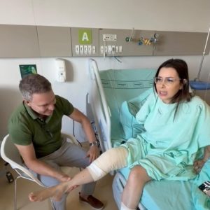 Após a cirurgia, que revelou seis lesões na patela, a equipe hospitalar encaminhou a deputada para o quarto, onde seguirá em recuperação. Carol De Toni agradeceu ao médico e à equipe envolvida no atendimento.