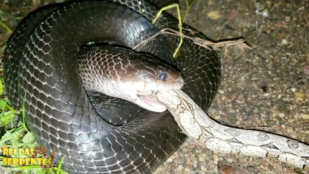 Muçurana capturando e consumindo uma cascavel — Foto: Foto: Reprodução / Rei das
