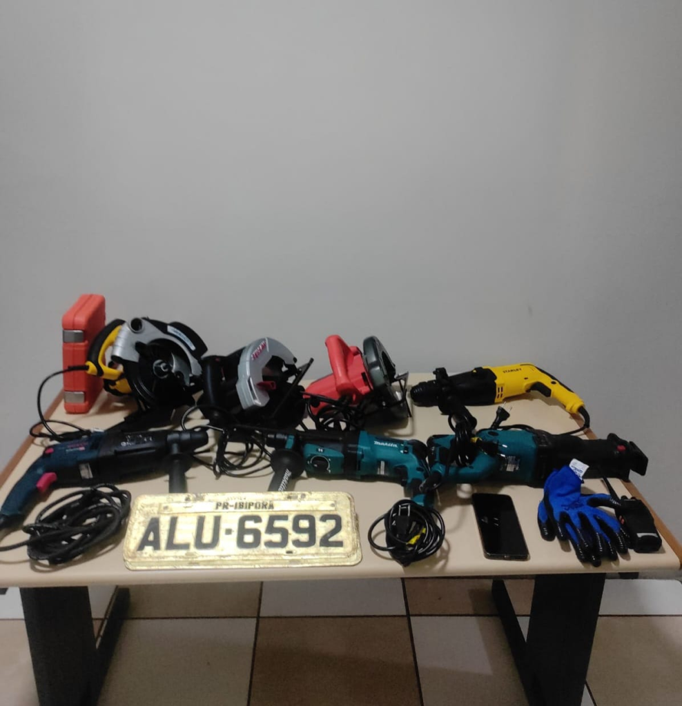 As equipes se deslocaram até o imóvel no Jardim Ponta Grossa, onde encontraram ferramentas novas, reconhecidas como produtos do furto. Além disso, foram localizadas placas veiculares e documentos em nome de um terceiro. Todo o material, incluindo dois celulares e o veículo utilizado, foi apreendido, e os homens foram encaminhados à 17ª Subdivisão da Polícia Civil do Paraná.