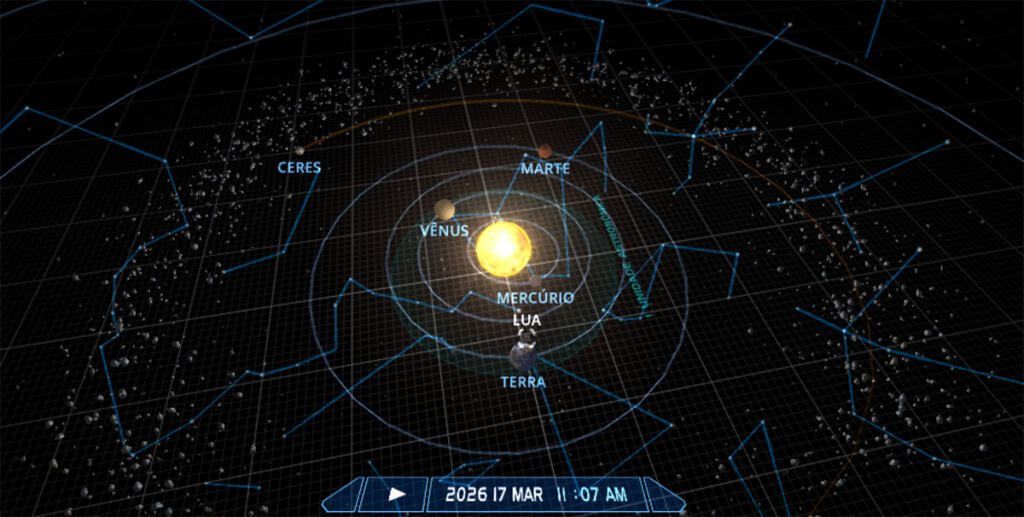 A conjunção com Vênus ocorrerá na sexta-feira (20) e, embora também não seja visível, os dois astros poderão ser observados no fim da tarde, a partir das 18h26, ainda que a tarefa seja desafiadora. Eles estarão localizados na constelação de Peixes, com a Lua apresentando uma magnitude de -8,9 e Vênus de -3,9.