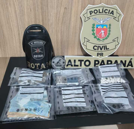 A Polícia Civil do Paraná (PCPR), em conjunto com a Polícia Militar do Paraná (PMPR), prendeu um homem, de 21 anos, em flagrante pelo crime de tráfico de drogas. A captura aconteceu na tarde desta quinta-feira (29), durante o cumprimento de um mandado de busca e apreensão em Alto Paraná, no Noroeste do Estado.